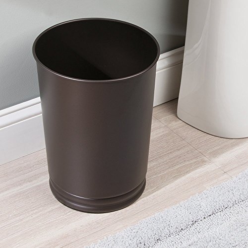 mDesign Round Metal Tall Trash Can Wastebasket, Garbage Container Bin for Bathrooms, Powder Rooms, Kitchens, Home Offices - Durable Steel Construction with a Bronze Finish