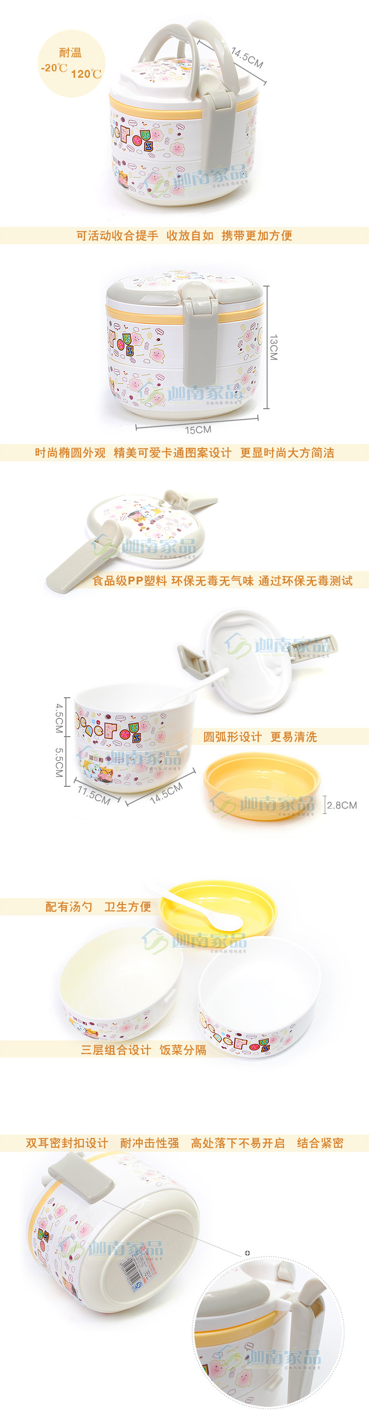 ???? ???卡哇伊的图案,三层饭,菜分隔,代汤勺,卫生方便;