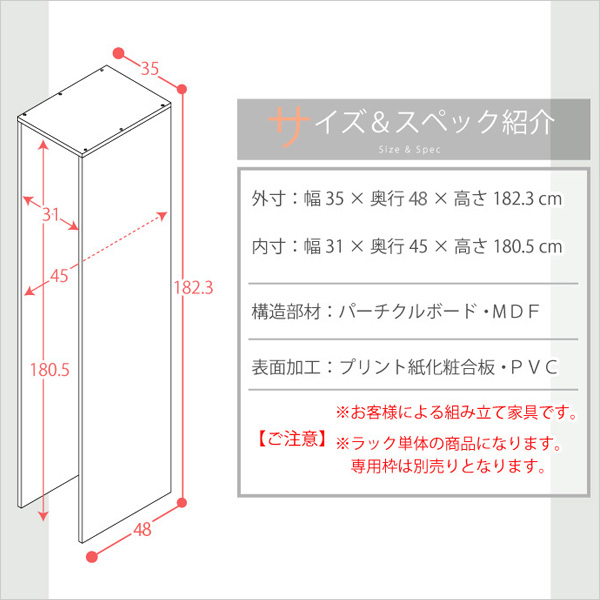 ●内寸:幅31cm×奥行き45cm×高さ180.5cm