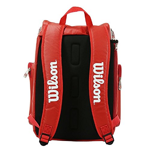 Studio : Wilson Publisher : Wilson Binding : Misc. Product Description The Tour V Red Large Tennis Backpack is Wilson's new an improved backpack, ideal for any competitive player looking for a sleek and efficient backpack to carry on and off the court. The backpack's efficient design can accommodate 2-3 uncovered racquets, plus players will enjoy easy-access pockets to store all of your essentials! Great option for any type of player who is looking for a backpack that can carry all of your tennis gear! 0