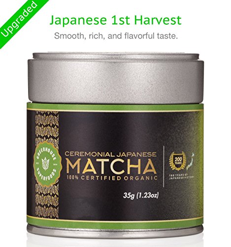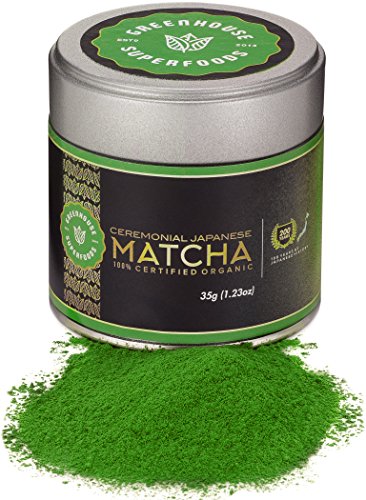 Matcha Green Tea Powder Double Organic - Japanese Ceremonial Grade (35g) - 1st Harvest - 200 Years Expertise - GREENHOUSE SUPERFOODS [1.23oz]