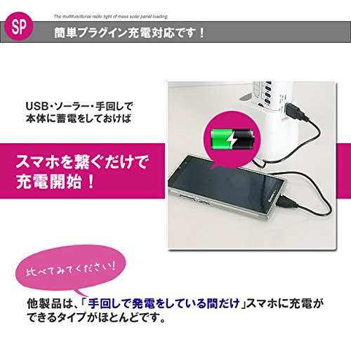 Solar charge · hand-cranked charge · USB charging equipped with a big success at disasters and outdoor ♪ You can use it as a desk light at normal times.
