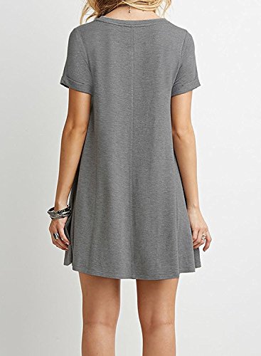 Women's Summer Casual Plain Basic short Sleeves Loose Swing Mini T-shirt Dress.