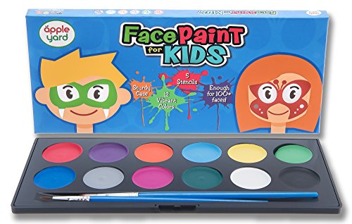 - SUPERSIZED FACE PAINTING KIT - With enough paint for 100+ faces you will receive everything you need to for your face painting fun. Kit includes 5 Stencils, 12 x 8ml Paints, 2 professional art brushes and supplied in STURDY cosmetics carry case. Ideal for school, church, festivals, carnivals, birthday parties, cosplay, prime sports, football events, theatre performances, role play, or any fictitious superhero type character and not to forget Halloween!