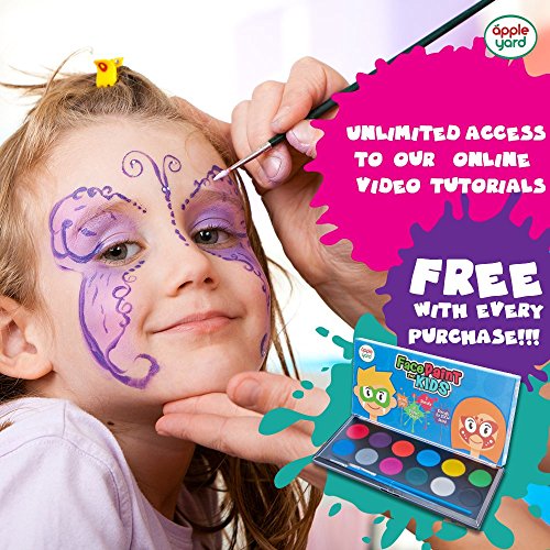 Face Paint for Kids - 12 Color, 2 Professional Brushes, Stencils, Sturdy Slimline Cosmetics Case - Professional Quality Facepaints by Blue Squid - Water Based Fully FDA Compliant - Online Video Guide