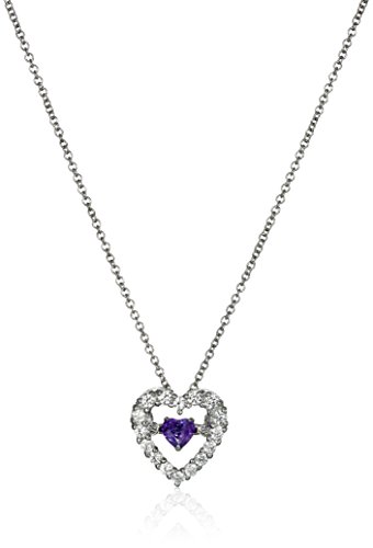 Sterling Silver Amethyst and Created White Sapphire Dancing Heart Pendant Necklace, 18"