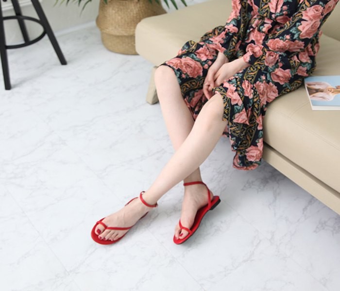 商品名:サンダル レディース ペタンコ アンクルストラップ 2018 夏 ファッション 靴 婦人靴