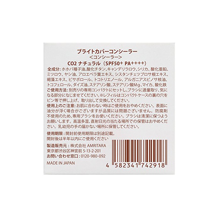 원본상품명: アムリタ?ラ ブライトカバ?コンシ?ラ? SPF50+ PA++++ レフィル CO2 ナチュラル