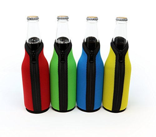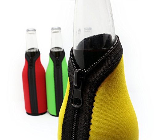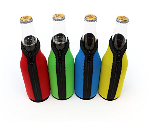 - EASY-ON - Our unique new beer botle sleeve design makes these bottle coolers really easy to use. No pulling, no stretching, no fuss. Premium quality zipper goes all the way to the bottom. Drop your bottle in, and zip it up to keep your drink cooler for longer.