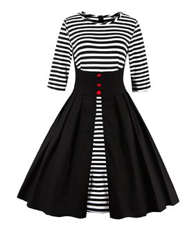 KILLREAL Women's Elegant Striped Patchwork Business Casual Cocktail Dress with Half Sleeves Black Small