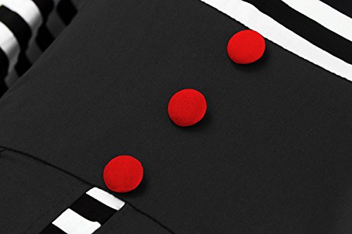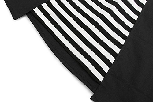 KILLREAL Women's Elegant Striped Patchwork Business Casual Cocktail Dress with Half Sleeves Black Large