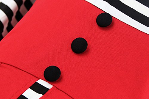 KILLREAL Women's Half Sleeved Christmas Casual Striped Vintage Cocktail Party Dress Red Large