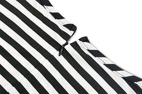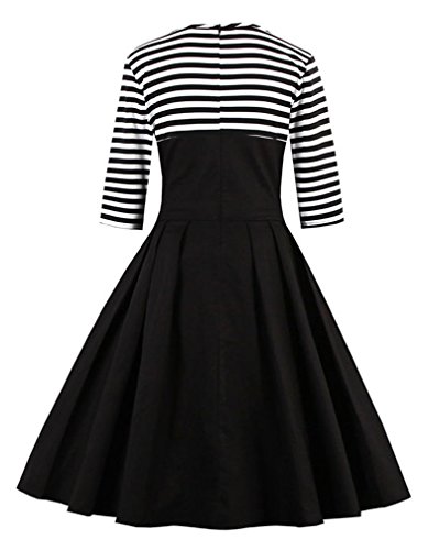 KILLREAL Women's Elegant Striped Patchwork Business Casual Cocktail Dress with Half Sleeves Black Medium