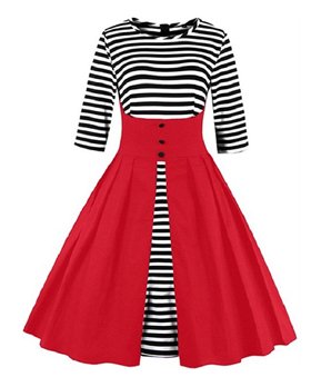 KILLREAL Women's Half Sleeved Christmas Casual Striped Vintage Cocktail Party Dress Red Small