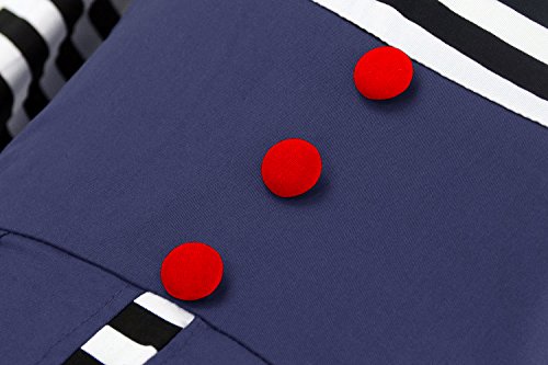 KILLREAL Women's 1950's Vintage Striped Business Casual Dress with Half Sleeves Blue Large