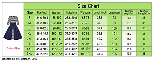 KILLREAL Women's 1950's Vintage Striped Business Casual Dress with Half Sleeves Blue XXXXX-Large