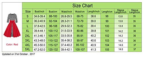 KILLREAL Women's Half Sleeved Christmas Casual Striped Vintage Cocktail Party Dress Red XXXX-Large