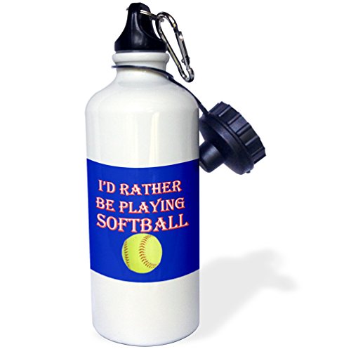 3dRose wb_213135_1 ID Rather be Playing Softball Game Winning Score Popular Saying Sports Water Bottle, 21 oz, White