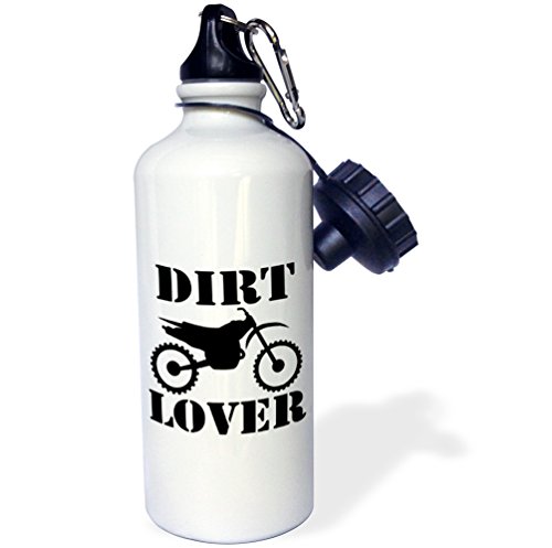 3dRose wb_180548_1 Black Dirt Bike Graphic Image and Dirt Lover Text on White Background Sports Water Bottle, 21 oz, White