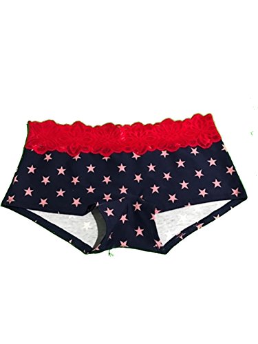 -. Title : Victoria's Secret PINK Lace Trim Boy short Panty Navy star / red lace