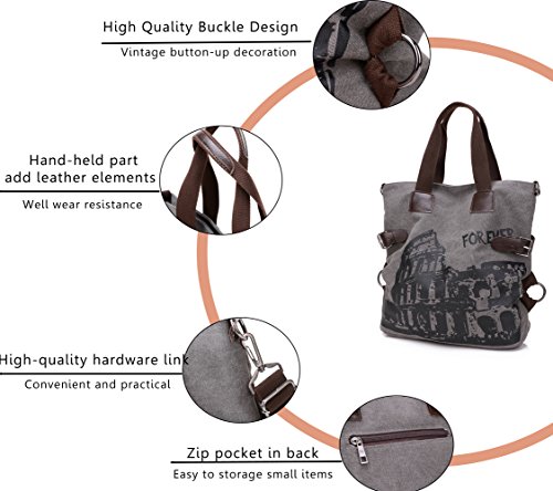 - High-quality Material -- Fine canvas & Leather, Eco-friendly casual life style, The fabric feels more soft and skin-friendly,canvas100% cotton canvas handbag, Wear-resistant, Durable and fashionable.