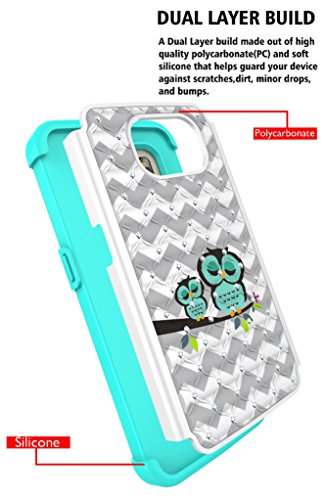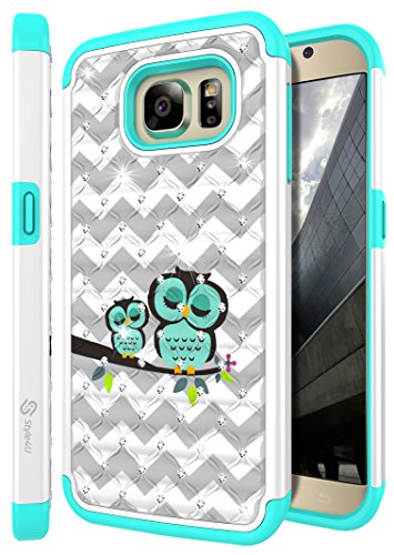 Galaxy S7 Case, Style4U Cute Owl Studded Rhinestone Crystal Bling Hybrid Armor Case Cover for Samsung Galaxy S7 with 1 Style4U Stylus [White / Teal]