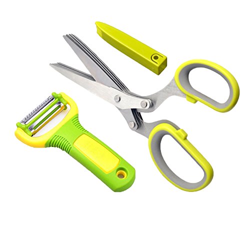 Potato Peeler and Herb Scissors with 5 Stainless Steel Blades and Clean Comb Cover
