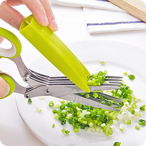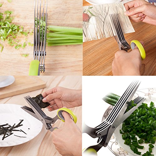 5-BLADES SCISSORS - the sharp stainless steel blades help you cut herbs easily and fast. The comb cover has two functions: store the scissors and clean the blades.