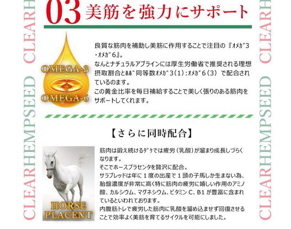 原材料名 ヘンププロテインパウダー・ホースプラセンタエキス/セルロース・ステアリン酸カルシウム ・微粒酸化ケイ素