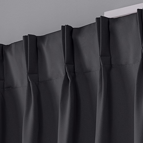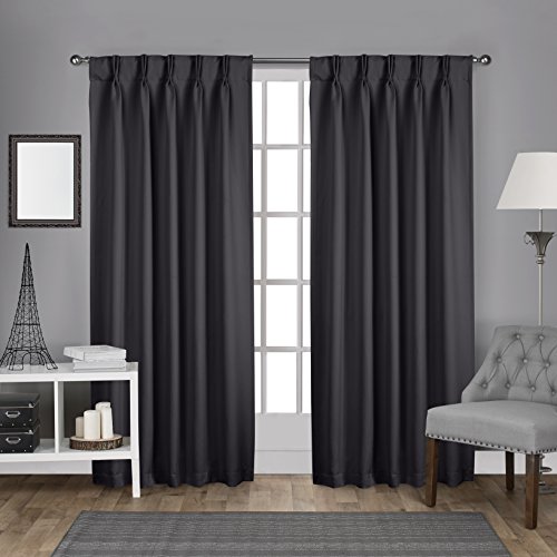 The Exclusive Home Sateen P" Pleat Insulated Blackout back tab window curtain panels bring a rich and luxurious look and ultra soft feel to any room. These woven panels drape beautifully and are interwoven with blackout insulation provided by LightBlock and Thermax technology. With both LightBlock and Thermax Technology woven into the curtains, these panels will block light, prevent harmful UV rays from reaching your floors and furniture, efficiently prevents cold or heat transfer from outside, will increase energy efficiency of your home, provide unparalleled privacy, and allow you to create darkness at any time of day. Perfect drapery option for anyone seeking to block daylight, take a nap, or keep sun glare off your TV. These beautiful panels are the ultimate finishing touch to complete any window setting in your home, apartment, office, business and more. The Sateen P" Pleat drapery is constructed with hidden back tabs, fitting the curtain rod of your choice up to 1 5/8 " in diameter. Impress your friends, family and guests with these window curtain panels on any window.Feature