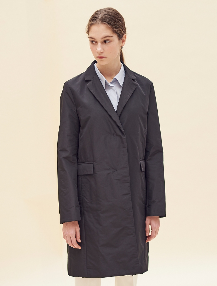 - 베이직한 테일러드 디자인의 패딩 충전 코트입니다.