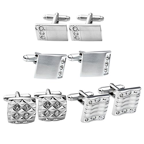 -. Feature : Each pack comes in a deluxe gift box. Material: Stainless Steel (Note: Other sellers's Tie clip are Alloy but our material is high quality Stainless Steel.) / High quality 4 pairs of Cufflinks set in different designs and textures. / Great electroplate technique insures long-time color retention. Thick strengthening clasps, sturdy and durable. / Delicate design and graceful shape / Multi-purpose clothing which can be adapted to casual and formal occasions