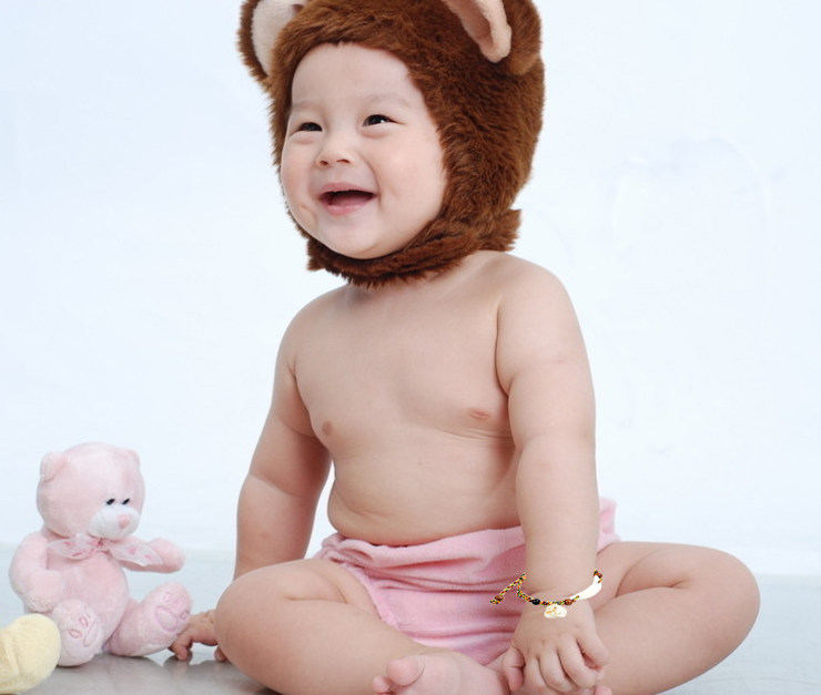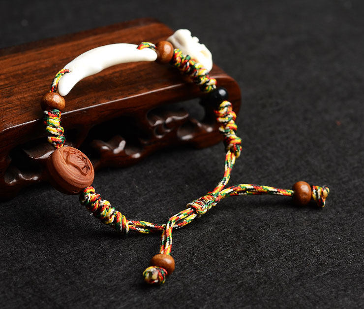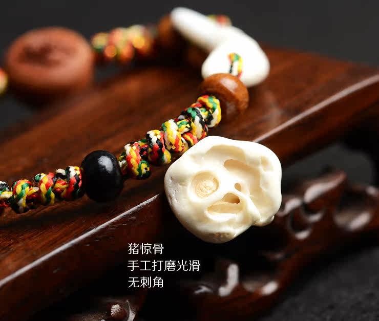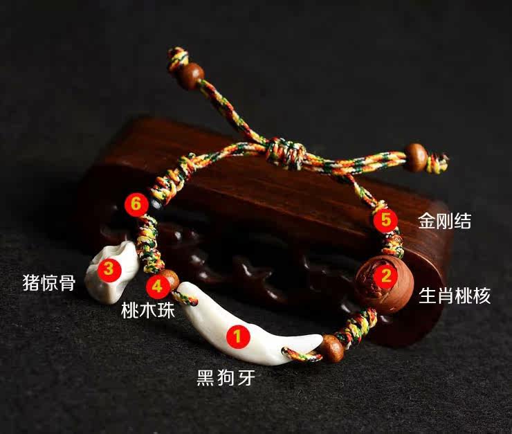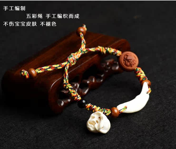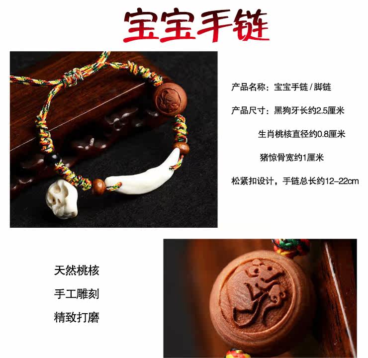 宝宝手链 婴儿脚链天然桃木五彩绳编绳桃核狗牙猪惊骨