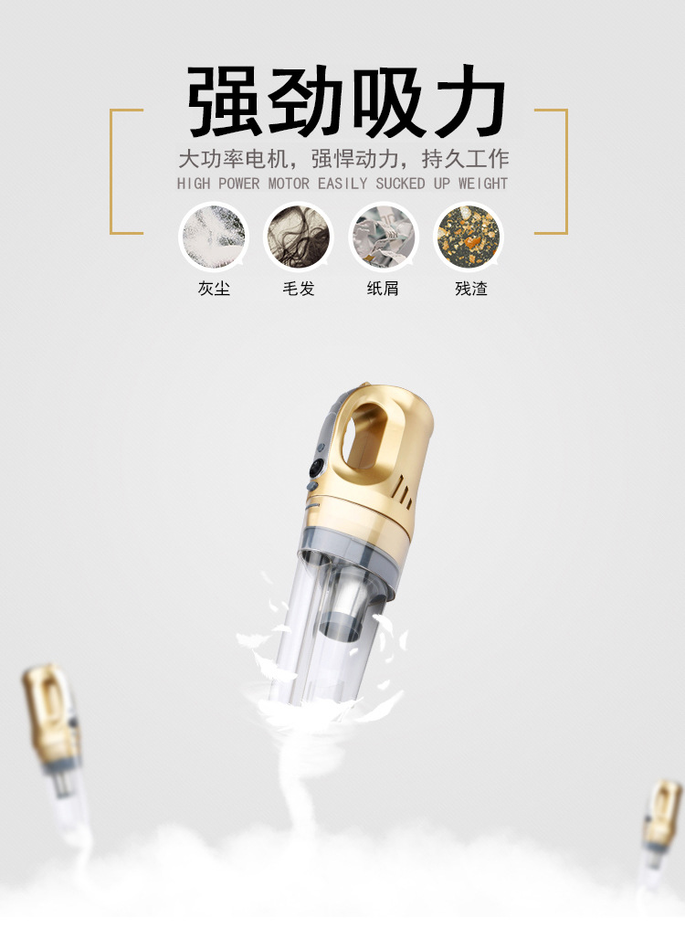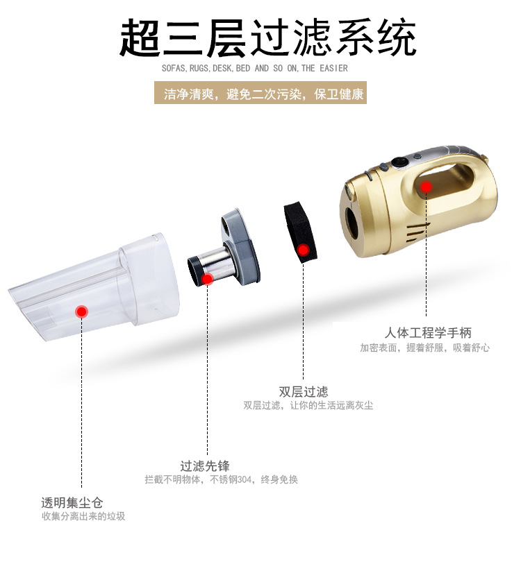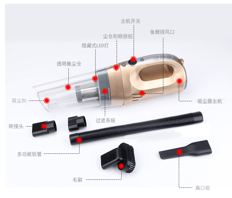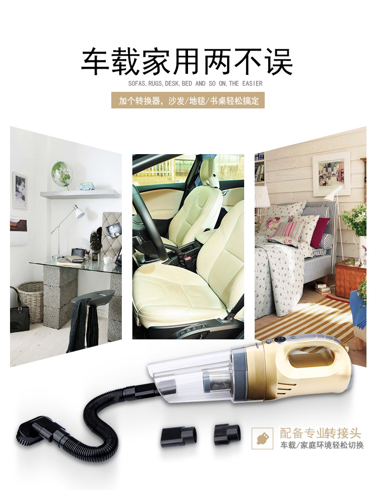 本产品为150W大功率真空吸力,对付车内纸屑、饼干屑、灰尘、毛发不在话下。5m线长,足够前排、后排进行清洁使用。工作简单、效率,再也不用为清理不到的垃圾感到烦恼了!这些还为您省了一大笔洗车费用呢。加装家用电源转换器,还可以在家里使用,可谓人性化!