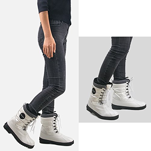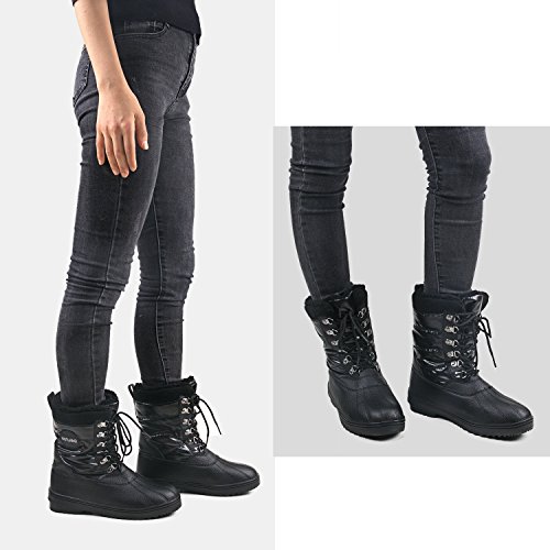 Binding : Apparel Product Description Tips: a. The boot comes directly from the factory. Thus some fur may be left over from the manufacturing process. You can clear the inside with your hands. b. Due to thick fur lining, some people may find it difficult to get on the boot. If it happens, you can put a plastic bag over your feet to help you slide in the boot. A pair of silk socks also does the trick. c. The thick platform can prevent your shoes from getting dirt or wet when it rains. However, the shaft was made of textile fiber, which was not water-resistant. So we suggest that do not use this boot as rain boot. Proper use and care can extend their service life. Shenda Women's Size Chart 5.5US=36EU=23cm Foot Length 6.5US=37EU=23.5cm Foot Length 7.5US=38EU=24cm Foot Length 8.5US=39EU=24.5cm Foot Length 9.5US=40EU=25cm Foot Length 10.5US=41EU=25.5cm Foot Length 0