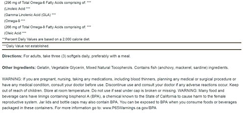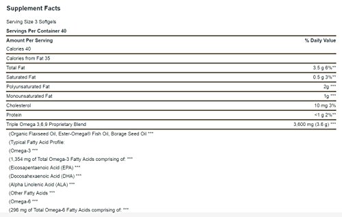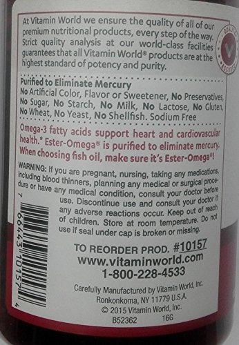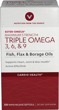 Studio : Vitamin World Publisher : Vitamin World Binding : Health and Beauty Product Description ? Features Omega 3, 6 and 9 fatty acids ? Purified to eliminate mercury ? Supports heart and cardiovascular health** Maximum Strength Triple Omega 3-6-9 features a comprehensive blend of nutritional oils - Fish, Flax and Borage - to contribute to heart and cardiovascular wellness.** The fish oil is Ester-Omega®, a concentrated and highly purified fish oil selected from the finest deep sea, cold water fish. This unique maximum strength formula contains Omega 3, 6 and 9 fatty acids per serving. 0