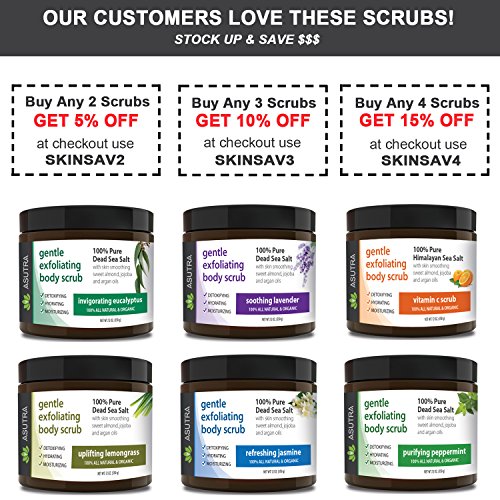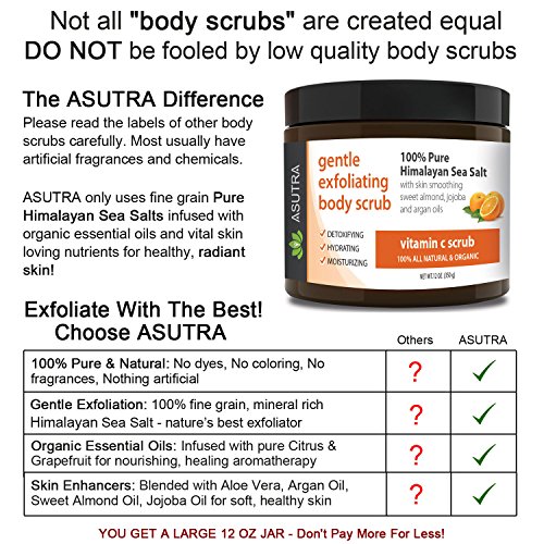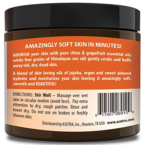 MORE THAN JUST A SCRUB - IT'S SKIN THERAPY The fine grains of Himalayan sea salt penetrates to unclog pores minimizing blackheads, blemishes and in-grown hairs leaving skin visibly brightened. ASUTRA only uses 100% mineral rich Pink Himalayan sea salts - NATURE'S BEST EXFOLIATOR- there is a big difference! - everything on your body is 100% organic & natural.