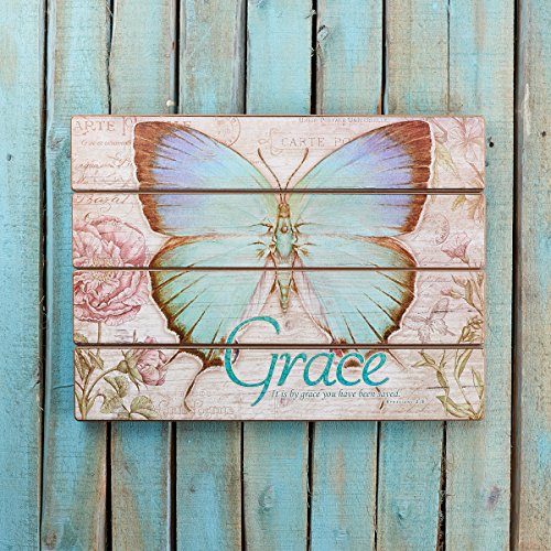 The Botanic Butterfly Blessings "Grace" Wooden Wall Plaque offers a presentation that will engage gardeners and butterfly lovers alike. Featuring the artwork of Jane Shasky with her fresh botanicals embellished with elegant calligraphy fashioned as a "carte postale" serving as a background for a signature blue butterfly. Not only beautiful on your wall, the message from Ephesians 2:8 will offer inspiration with each glance.