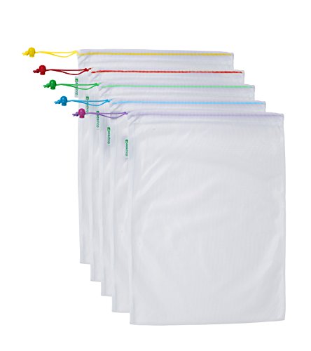 COLOR CODED TAGS: This pack of five mesh bags makes organizing your food and storage items a cinch. Each bag has a different color drawstring and tag, so everything stays in its rightful place.