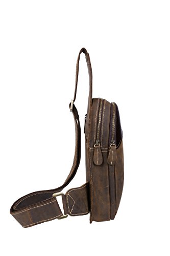 -. Title : Men's Brown Leather Backpack Hiking Rucksack Sport Sling Bag
