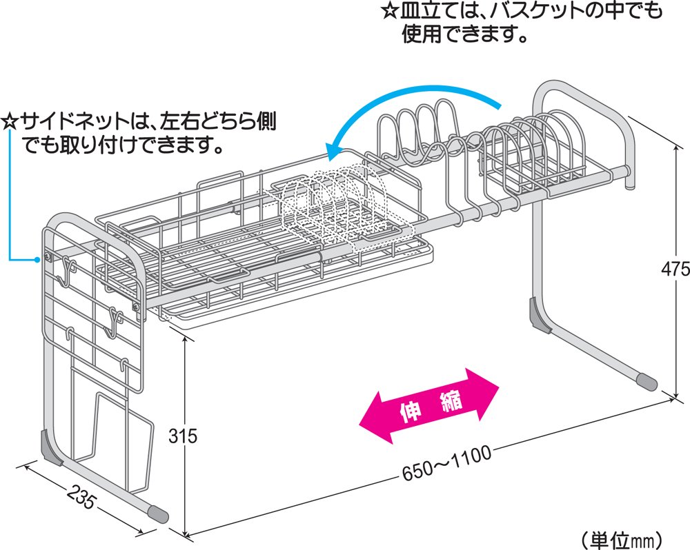 MORY Drainer stainless steel sink rack 65 ~ 110cm width