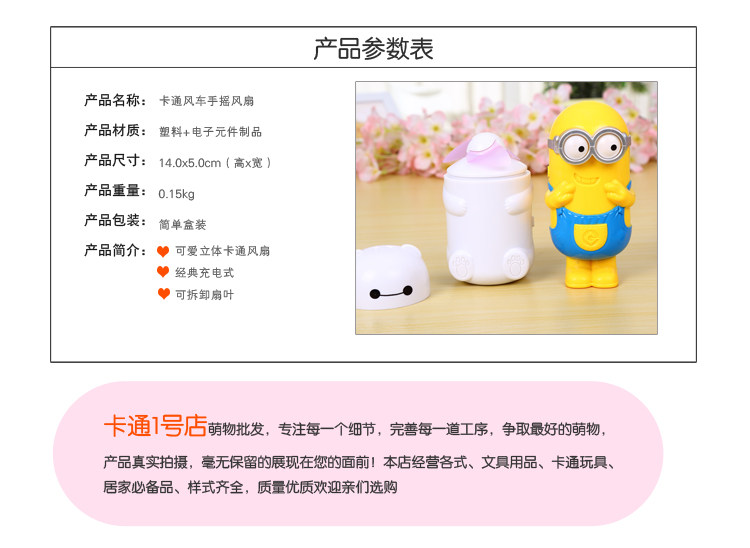 小黄人充电暖男大白usb风扇 卡通手持小风扇电动便携式迷你电风扇
