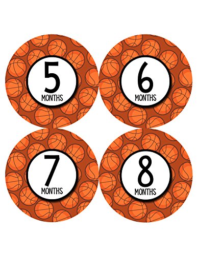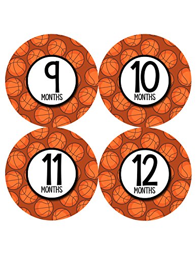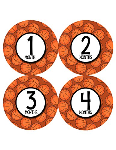Monthly Baby Stickers by Months In Motion | 12 Month Milestone Sticker for Newborn Babies Boy Basketball (Style 1159)