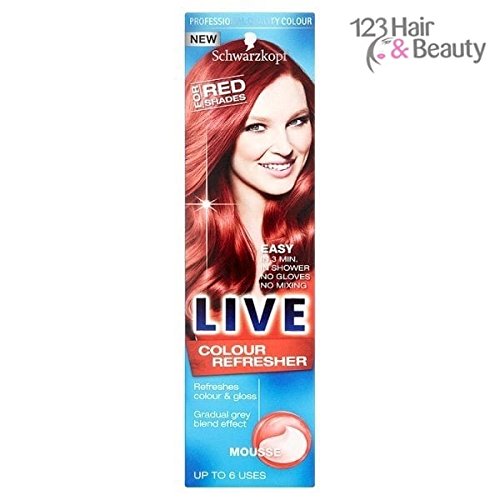 -. Feature : Schwarzkopf LIVE Colour Refresher for Red Shades  / LIVE Colour Refresher / Refreshes colour & gloss / Gradual grey blend effect / In-Shower application: