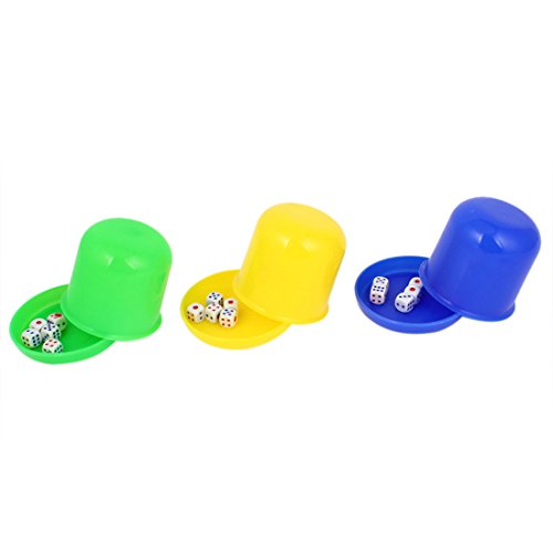 UXCELL PLASTIC KTV BAR PUB GAME CASUAL DICE SHAKER CUP 5 DICES 3PCS TRI-COLOR