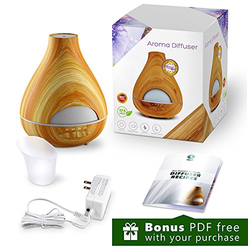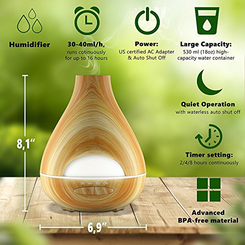 Aroma Essential Oil Diffuser New Model No Condensation with Waterless Auto Shut-off – Aromatherapy Ultrasonic Wood Grain Burner 530 Ml – 16 h – Air Humidifier for Home, Office, Spa
