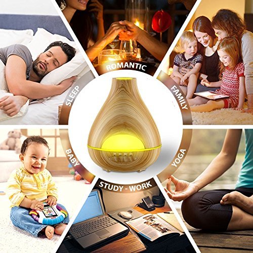 - RELAX WITH 1 CLICK – create your own spa at home with our quiet & easy in use, ultrasonic oil wood grain diffuser. Control the mist direction of this power saving diffuser by rotating its top cover 360˚;