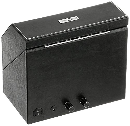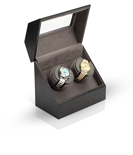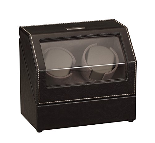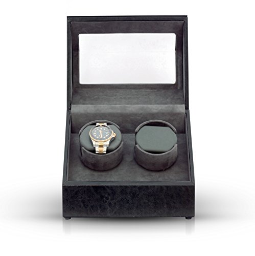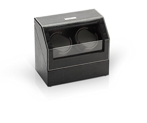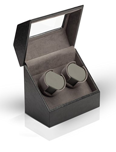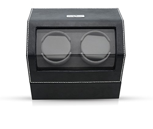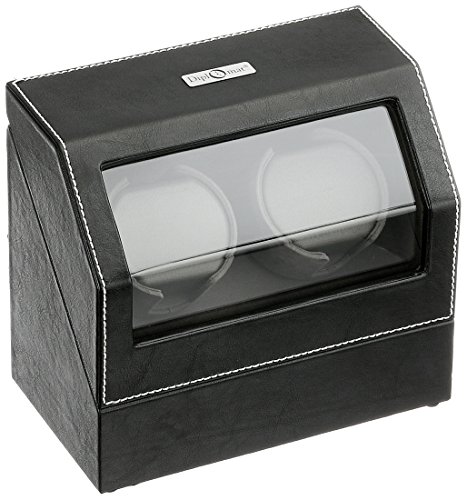 Studio : Diplomat Publisher : Diplomat Binding : Watch Product Description Diplomat Black Leather Double Watch Winder with Gray Microfiber Suede Interior and Smart Internal Bi-Directional Timer Control, Battery/AC Powered. Today's most extravagant timepieces, from Rolex to Breitling to Movado along with countless others, come equipped with the world's most advanced automatic, perpetual movement. This beautifully crafted automatic watch winder box will keep your favorite automatic watch wound and ready for when you need them. The winder is powered by a silent Japanese Mabuchi motor. Constructed of wood and wrapped in beautiful black leatherette. The interior is lined with gray ultra-soft microfiber suede. This winder is capable of winding two watches at a time. This watch winder features four programmed settings (650, 900, 1350, or 1800 TPD) which prevents the winder from over-winding or straining the internal mechanisms of the watch. The four programmed timer settings are: (1) The turntable will rotate clockwise for one minute, then rest of 20 minutes, then repeat; which provides a total of 650 TPD. (2) The turntable will rotate counter-clockwise for two minutes, then rest of 28 minutes, then repeat; which provides a total of 900 TPD. (3) The turntable will rotate counter-clockwise for 3 minutes then rest for 27 minutes, then the turntable will rotate clockwise for 3 minutes then rest for 27 minutes, then repeat; which provides a total of 1350 TPD. (4) The turntable will rotate clockwise for 10 minutes then rotate counter-clockwise for 10 minutes (this will repeat for 1 hour), then rest for seven hours, then repeat; which provides a total of 1800 TPD. Seiko Kinetic watches cannot be used on a winder. Diplomat offers a full 1 year warranty for this product so you can rest assured that your purchase is protected against defects. Powered by 100-240V Adaptor (Included) or Battery (Not Included). Weight: 4.0 lbs. Case Size: 9.5 x 5.75 x 8.5" 0