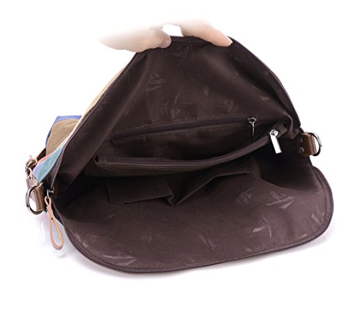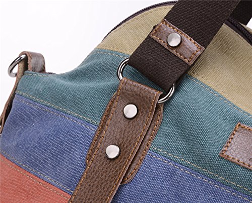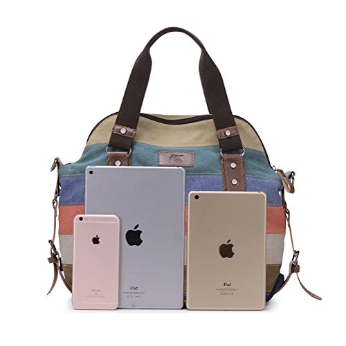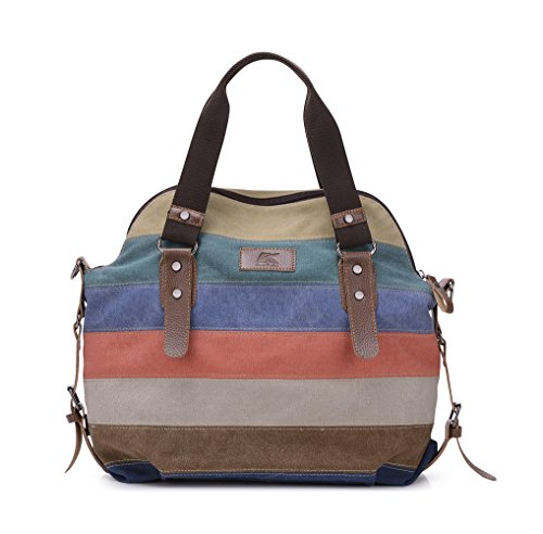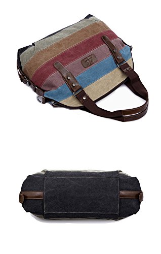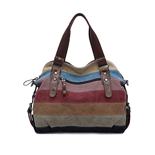 -. Title : WLE M Size Canvas Multi Zipper Pocket Oversized Simple Striped Stitching Retro Style Fashion Tote Shoulder Bags For Women Girls Ladies with Shoulder Strap