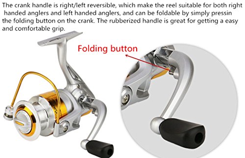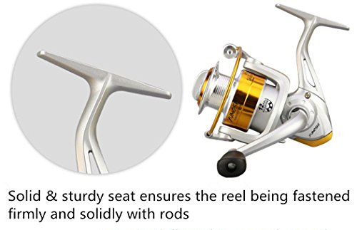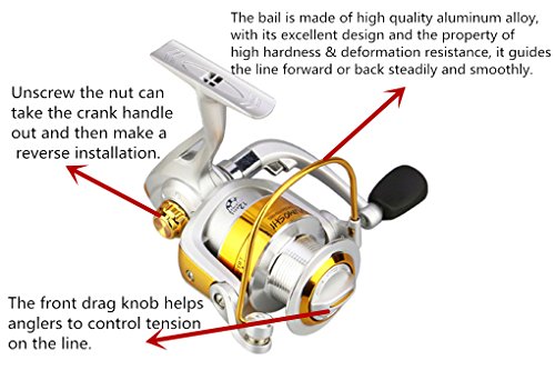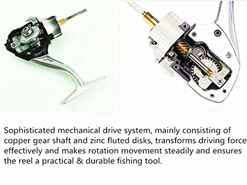-. Feature : Aluminum alloy spool and bail, copper gear shaft, zinc alloy fluted disk, semi-metallic crank handle with rubber knob, engineering plastic body / 12 ball bearings